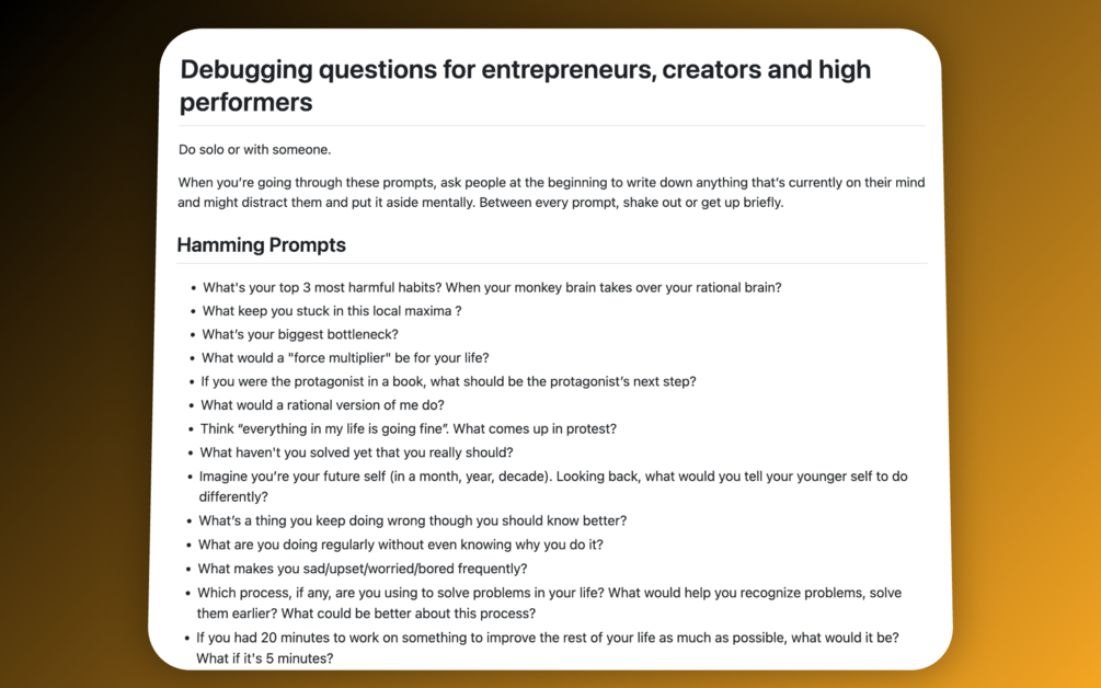 30 free debugging questions for entrepreneurs, creators, and high performers